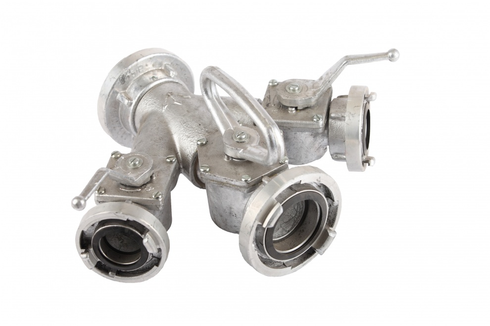 To divide the fire agent stream in fire hoses to more ways. There is 1-1 separate ball valve on each outlet of the divider. There is 1-1 piece of B-C-B storz adaptor fixed on outlet prongs.