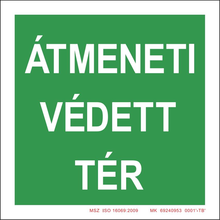 Menekülésben korlátozott személyek részére szolgáló átmeneti védett tér jelölésére szolgál.