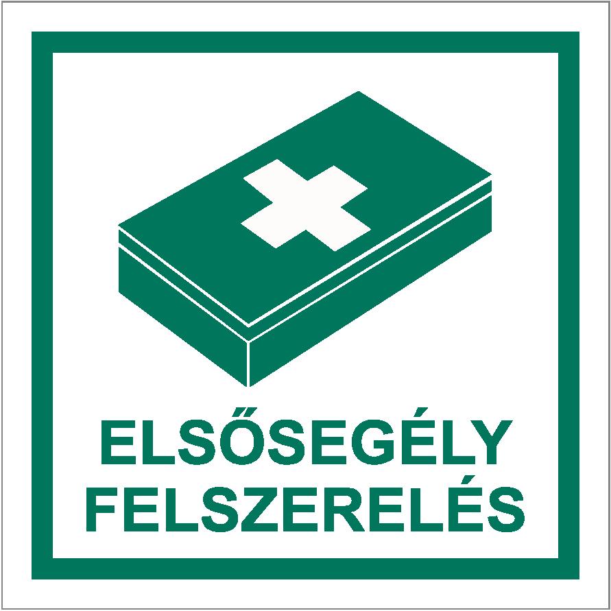 Minden munkahelyen készenlétben kell tartani munkahelyi elsősegély felszerelést, amelynek helyét jelzi ez a tábla.