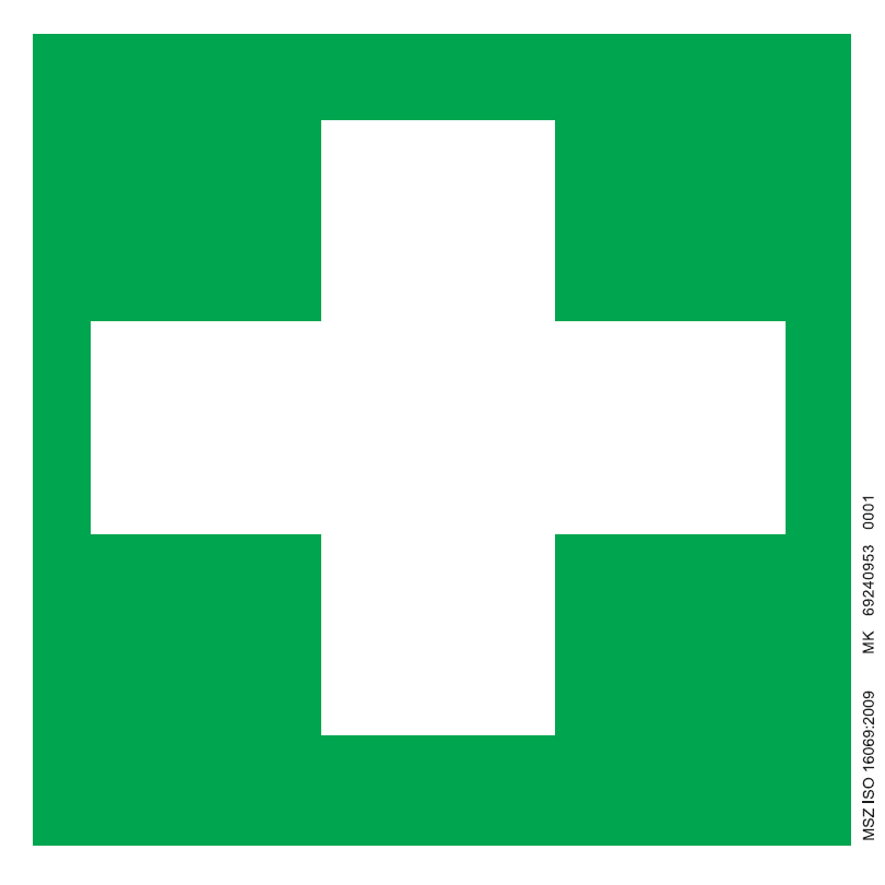 Elsősegélynyújtó hely vagy elsősegélydoboz, mentődoboz jelölésére szolgáló jelzés.