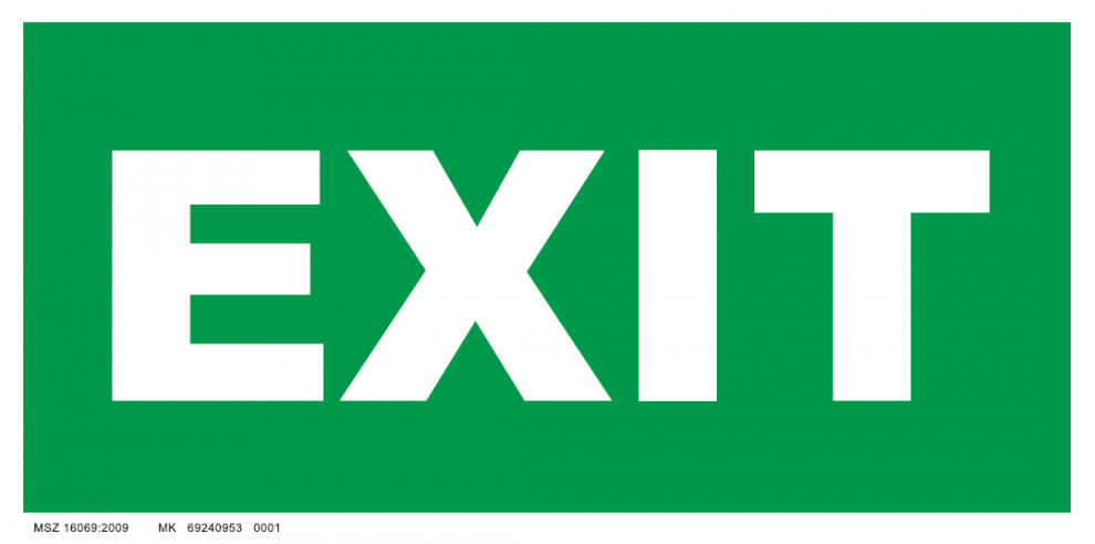 A kijárat jelölésére szolgáló angol nyelvű nemzetközi menekülési jelzés.