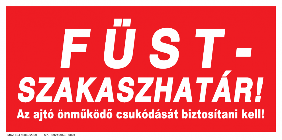 A füstgátló ajtókat "Füstszakaszhatár! Az ajtó önműködő csukódását biztosítani kell!" felirattal vagy jelzéssel kell ellátni, tartós, jól észlelhető és olvasható méretű kivitelben.