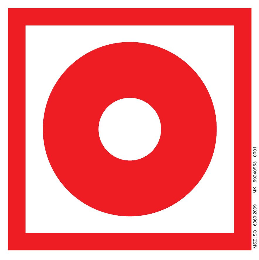 A tűz oltásához szükséges kézi tűzjelző helyét jelző piktogram.