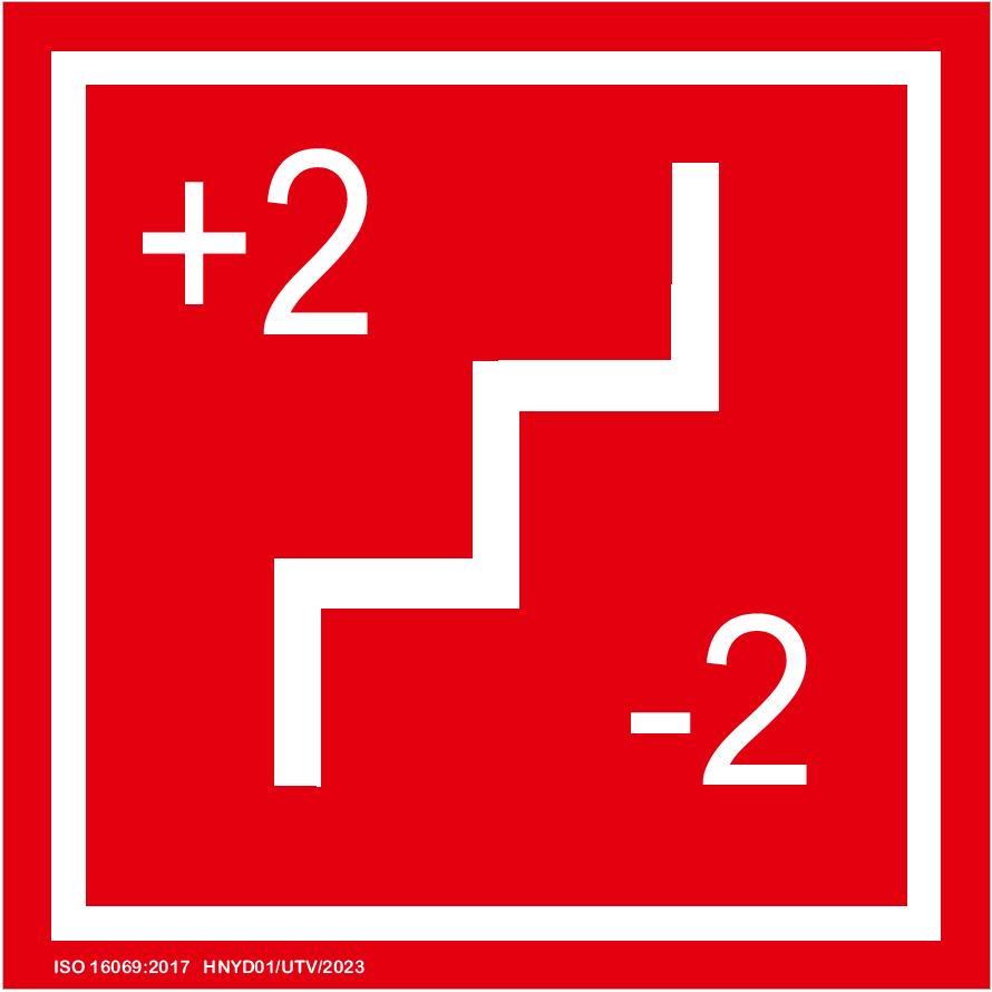 UV Lépcsőn elérhető szintek - Füstmentes lépcsőház piktogram - szintek: +2/-2