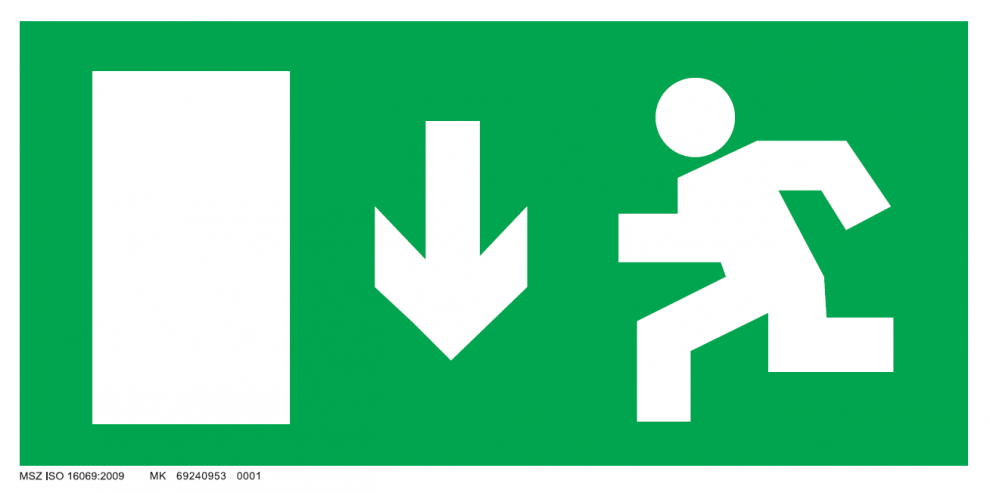 Épületekben és szabadtéren alkalmazható menekülési útvonalat, menekülési útirányt jelző utánvilágító, öntapadó tábla.