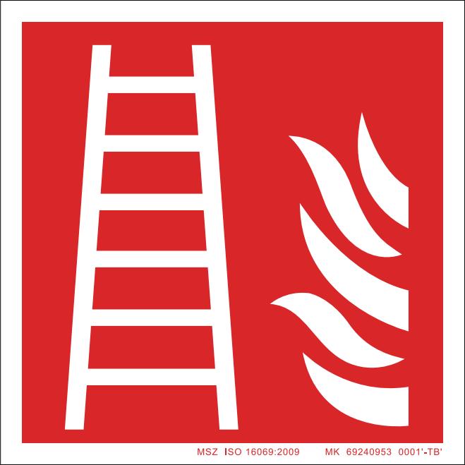 Tűzoltó létra helyét jelző tábla.