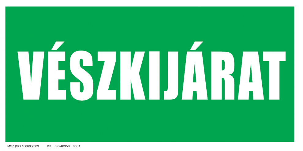 Az épület vészkijáratának jelölésére szolgáló menekülési útirány jelzés.