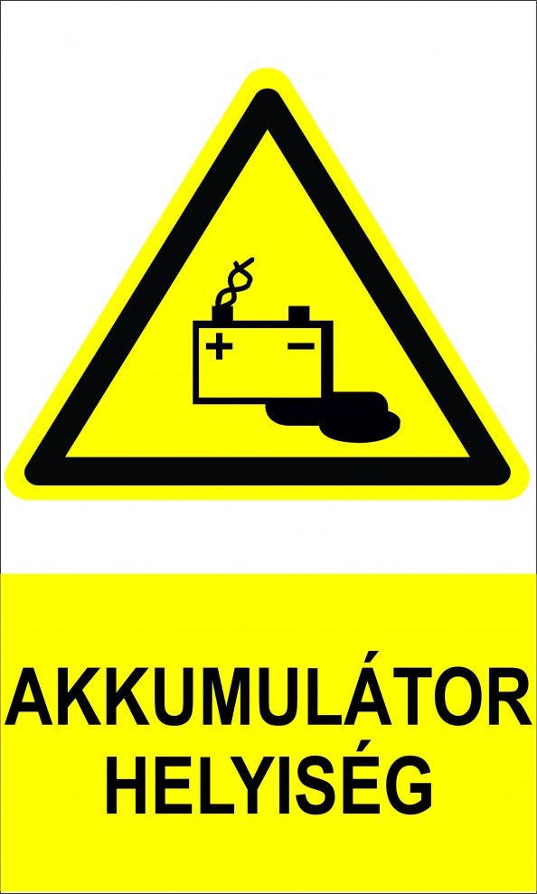 A táblának szabványos piktogramokat és figyelmeztető feliratokat kell tartalmaznia a robbanásveszélyes légkörre és savveszélyre (ha savas akkumulátorok vannak) való tekintettel. Az akkumulátor töltő helyiségek kialakítását szigorú munkavédelmi és tűzvédelmi előírások szabályozzák, mivel a töltés során robbanásveszélyes durranógáz (hidrogén) szabadulhat fel, és maró hatású elektrolitok lehetnek jelen.