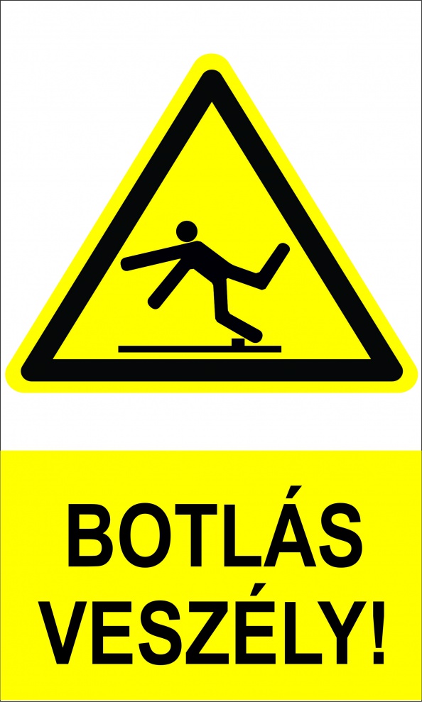 Munkavédelmi figyelmeztető jelzés, amely a padló síkjából kiálló, balesetveszélyes akadályokra hívja fel a figyelmet.