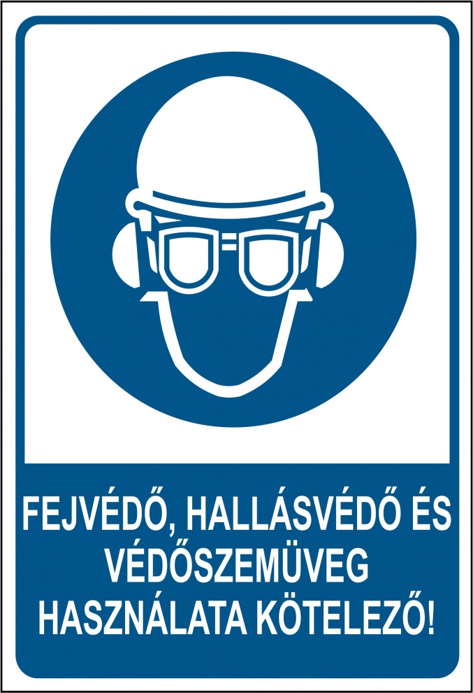 Fejvédő, hallásvédő és védőszemüveg használata kötelező!