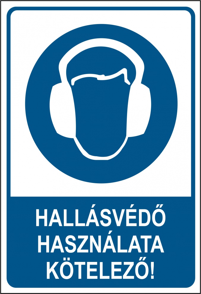 85 dB (A) feletti napi zajexpozÃció vagy 137 dB (C) csúcsérték: A területet "HallásvédÅ‘ használata kötelezÅ‘" táblával kell megjelölni, és kötelezÅ‘ a hallásvédÅ‘ eszközök viselése mindenki számára, aki ott tartózkodik.