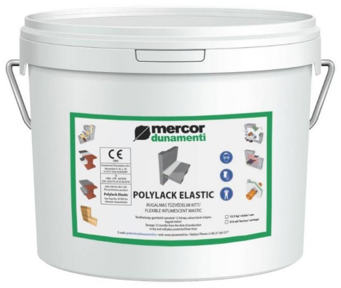 A Polylack Elastic tűzvédelmi kitt egy egykomponensű, speciális akrilát kopolimert tartalmazó rugalmas bevonó anyag kombi átvezetéshez és hézag kitöltéshez. Bevonata hajlékony, nyúlékony és tartósan rugalmas. Alkalmas dilatációs hézagok – függőleges falon lévő és födém hézagok – tűzgátló lezárására valamint kombi átvezetések lezárására.