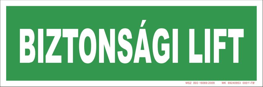 Biztonsági lift jelölésére szolgáló menekülési útirány jelzés.