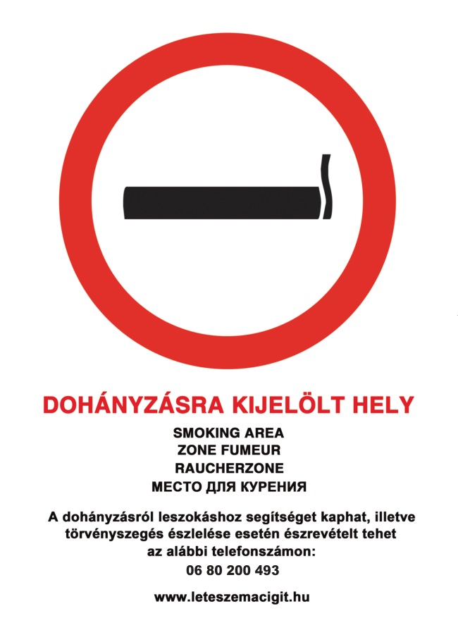 A helyiség bejáratánál, a helyiségben, vagy az érintett szabadtéren jelölni kell, hogy a helyiségben a dohányzás megengedett.