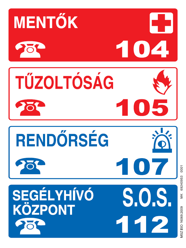 A közérdekű hívószámokat - mentők, tűzoltóság, rendőrség - jól látható helyen és időtálló kivitelben kell elhelyezni.