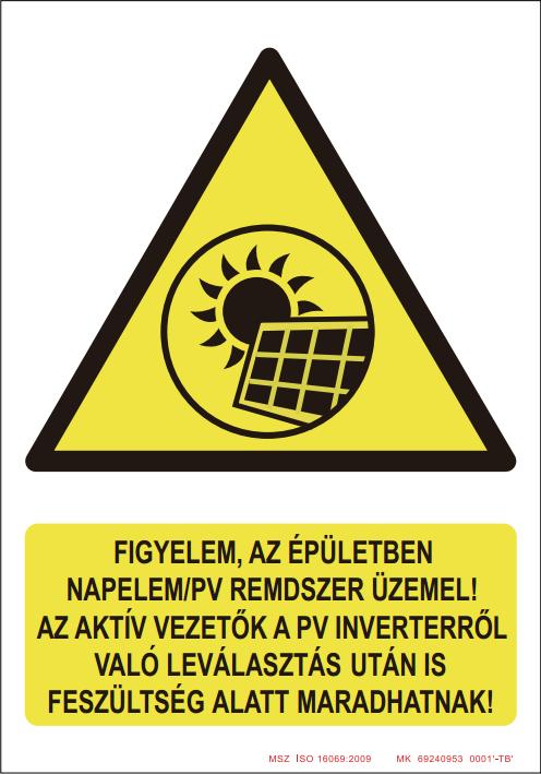 UV Napelem - Figyelem, az épületben napelem/PV rendszer üzemel!