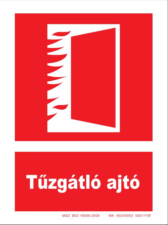 Tűzgátló ajtó helyét jelölő tábla