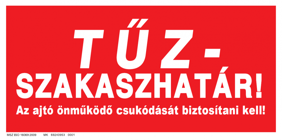 A tűzszakaszhatáron lévő tűzgátló ajtókat "Tűzszakaszhatár! Az ajtó önműködő csukódását biztosítani kell." felirattal vagy jelzéssel kell ellátni