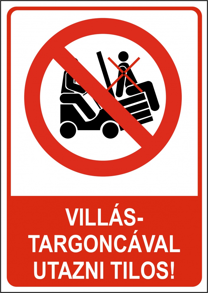 Személyek szállítása: Villás targoncát nem szabad emberek szállítására használni, kivéve, ha kifejezetten erre a célra tervezték és engedélyezték (pl. bizonyos emelőkosaras típusok).